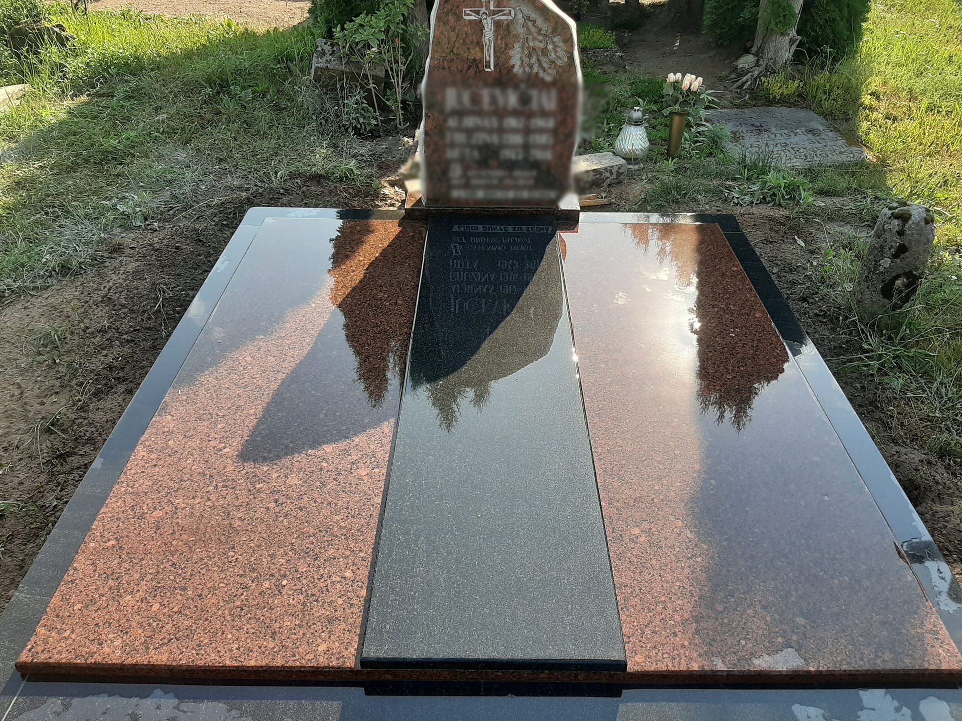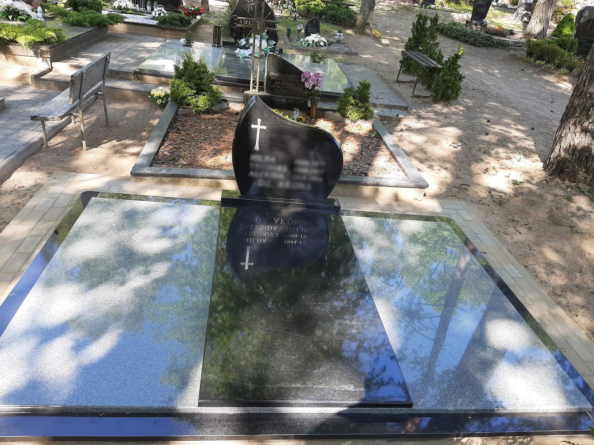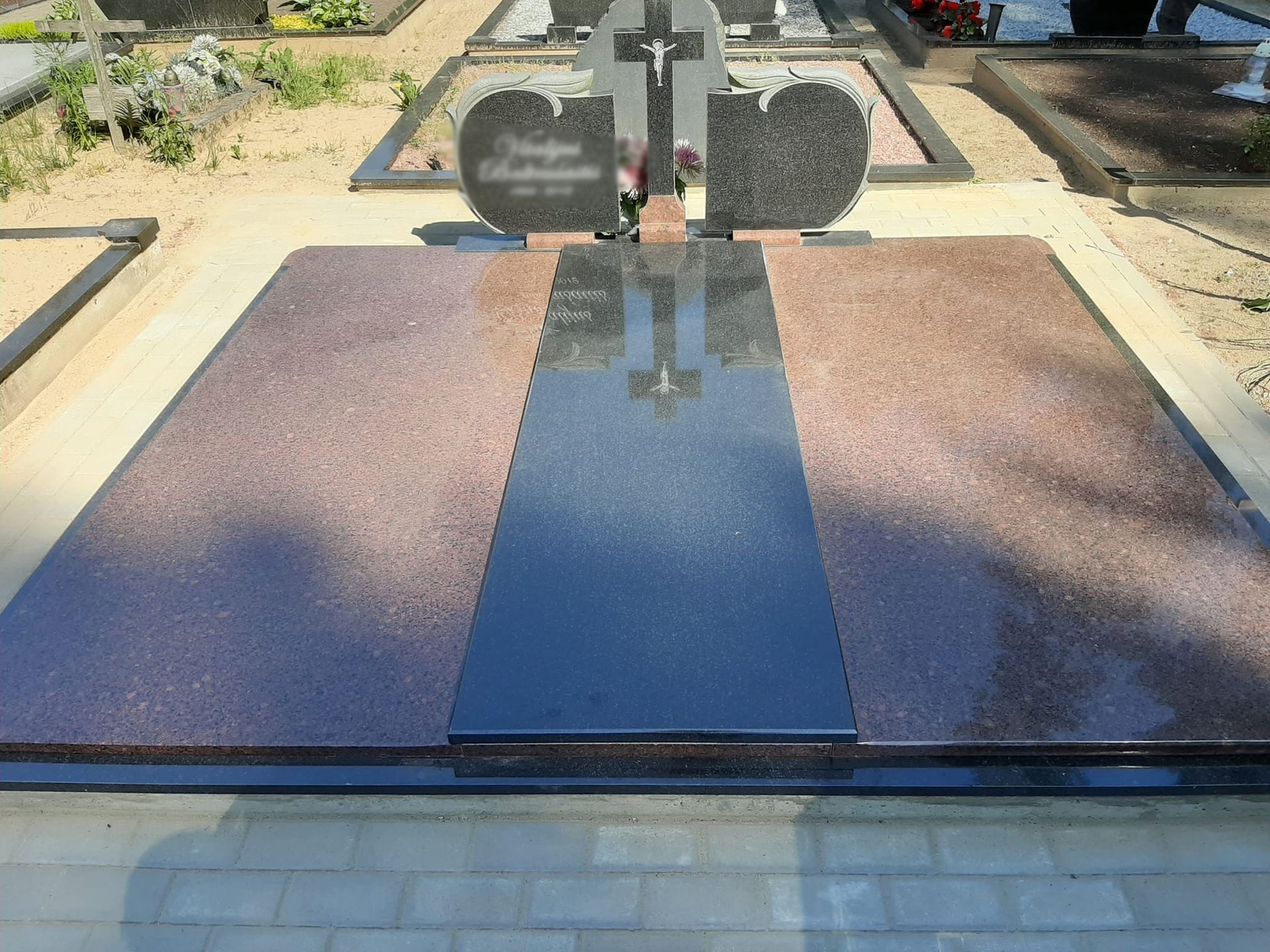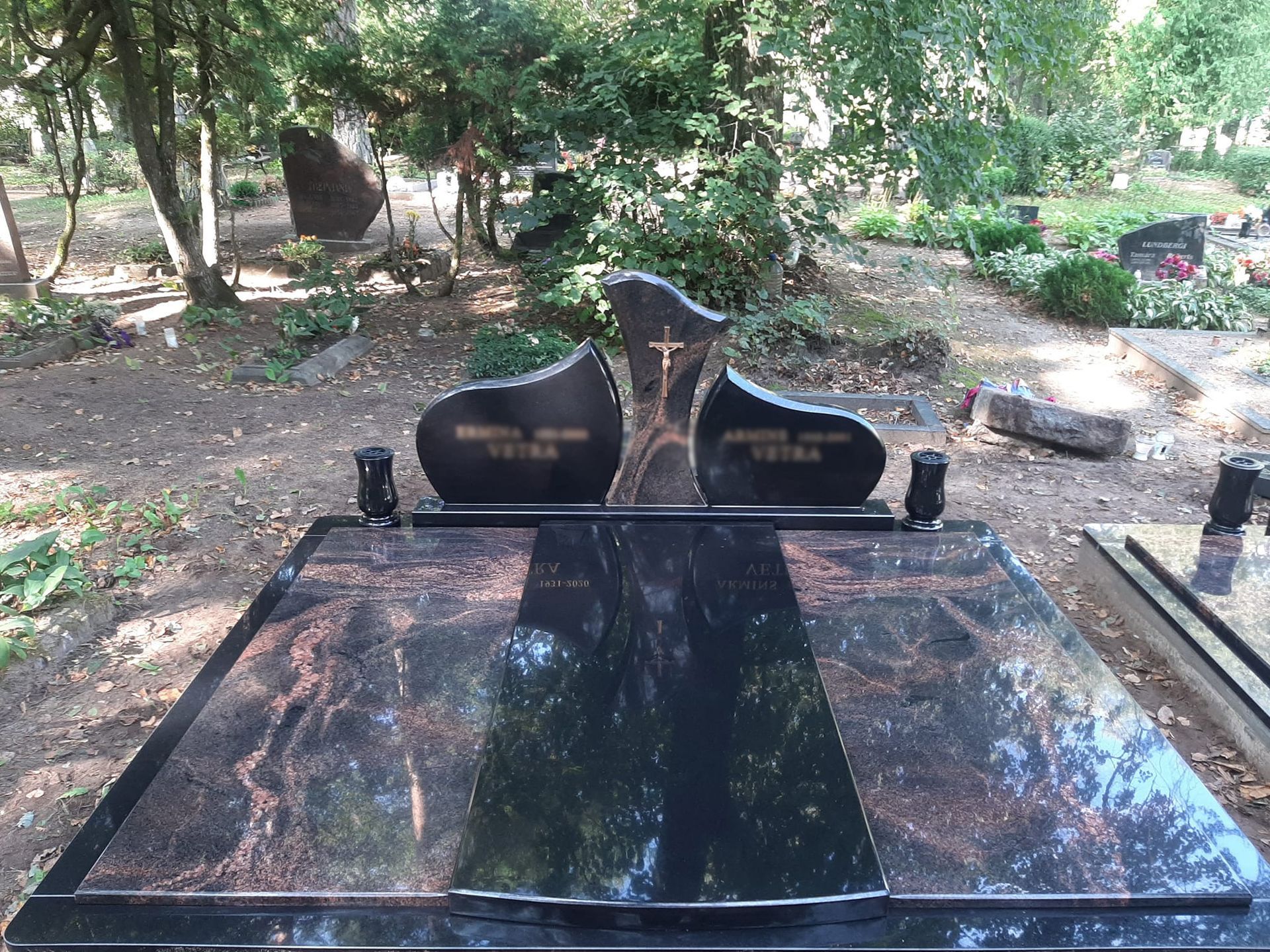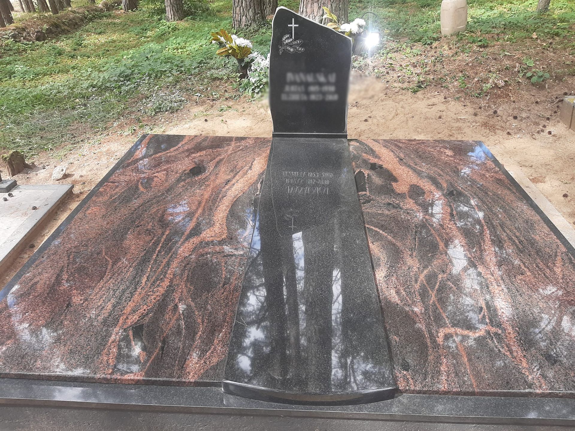 Pilnai dengiame kapavietę akmens plokštėmis arba akmens masės plytelėmis. Bortelių, paminklų gamyba, skaldos išpylimas, trinkelių klojimas aplink kapą ir kiti kapų įrengimo darbai. Taip pat teikiame pamatų liejimo paslaugas.